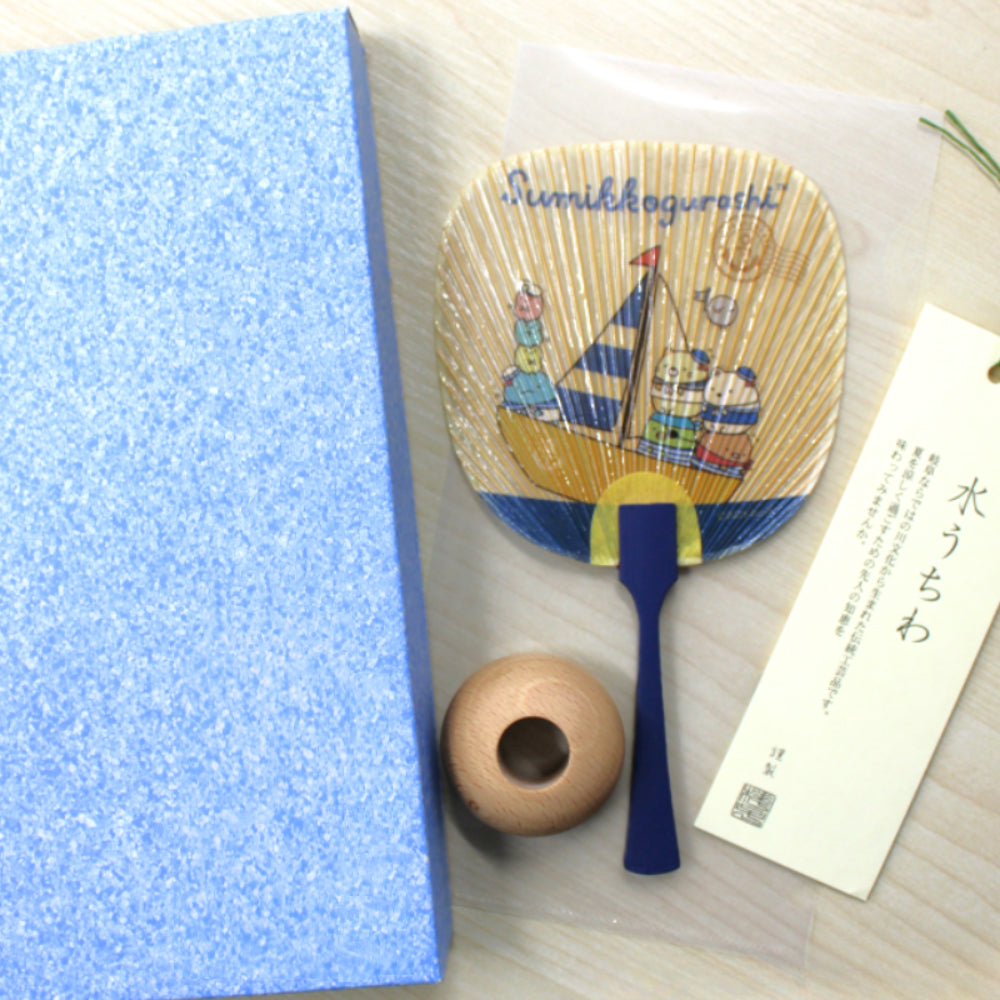 水うちわ 豆型<br>【すみっコぐらしふなたび】<br>美濃和紙<br>木製台座付き